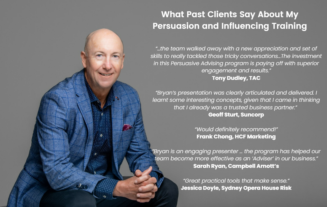 I’m keen to hear about your specific challenges in capability building of this essential executive skill: Persuasive advising. And to answer your questions on why my approach works so well for support function advisers.